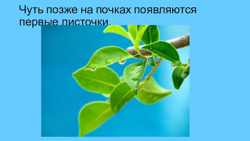Слайд 10Чуть позже на почках появляются первые листочки.