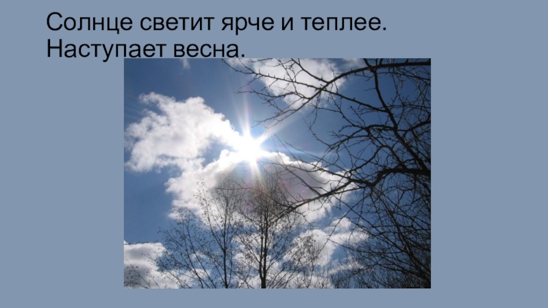 Слайд 3Солнце светит ярче и теплее. Наступает весна.