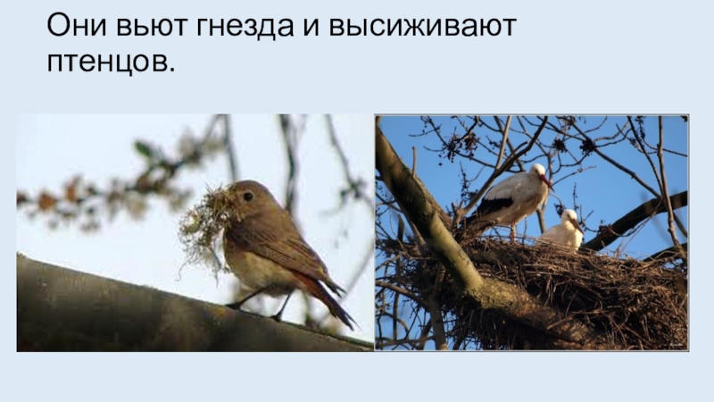 Слайд 12Они вьют гнезда и высиживают птенцов.