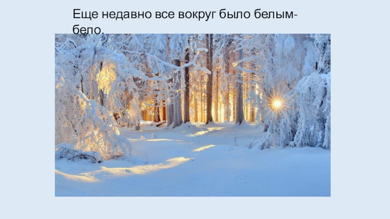 Слайд 1Еще недавно все вокруг было белым-бело.
