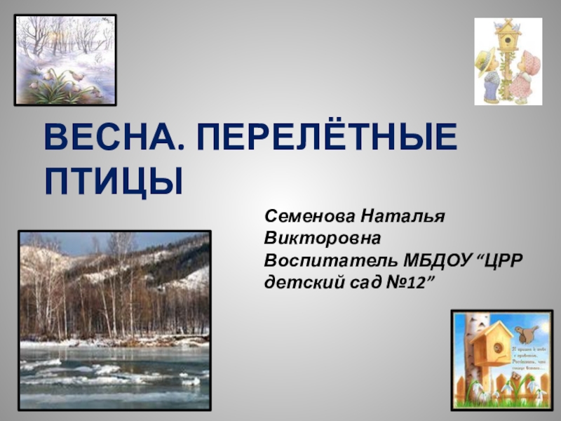 ВЕСНА. ПЕРЕЛЁТНЫЕ ПТИЦЫСеменова Наталья ВикторовнаВоспитатель МБДОУ “ЦРР детский сад №12”