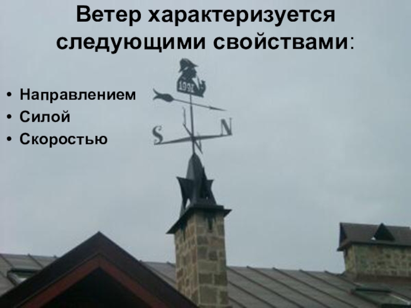 Слайд 4Ветер характеризуется следующими свойствами: