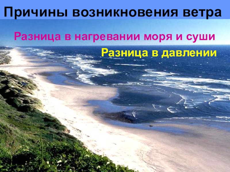 Причины возникновения ветраРазница в нагревании моря и суши