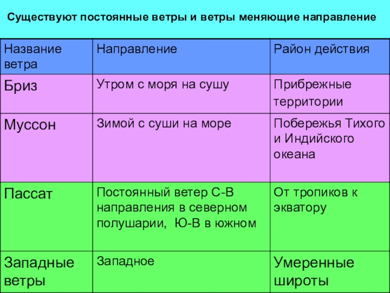 Существуют постоянные ветры и ветры меняющие направление