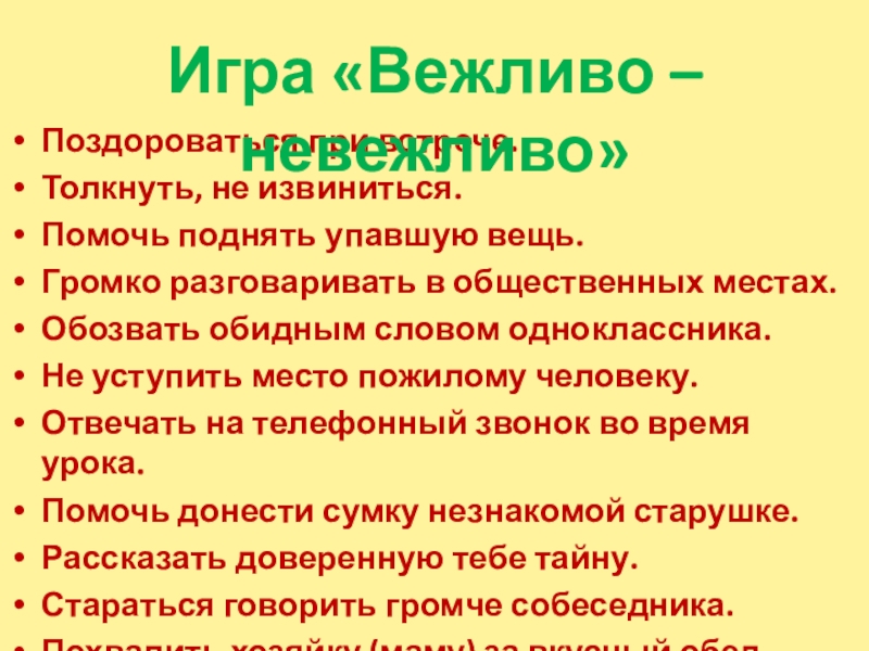 Игра «Вежливо – невежливо»