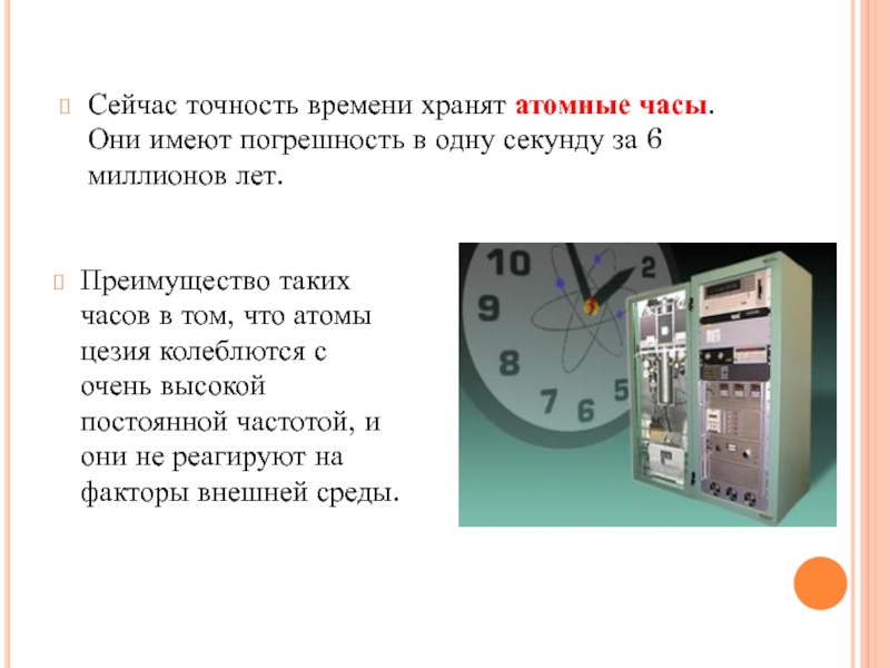 Преимущество таких часов в том, что атомы цезия колеблются с очень высокой постоянной частотой, и они не реагируют на факторы внешней среды.
