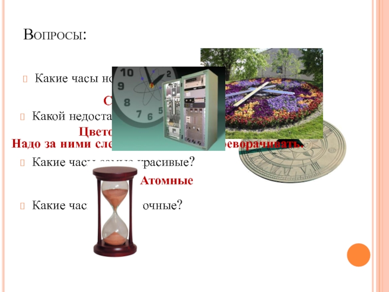 За свою долгую историю песочные часы претерпели множество изменений, однако они по-прежнему остаются незаменимым предметом обихода человека. Они находят применение в медицине, психологии и в быту.