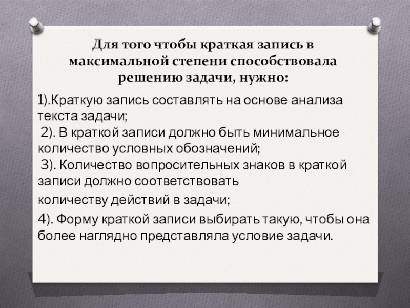 4). Форму краткой записи выбирать такую, чтобы она более наглядно представляла условие задачи.