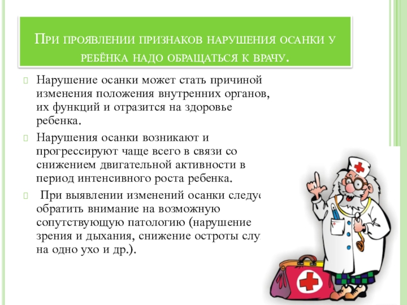При проявлении признаков нарушения осанки у ребенка надо обращаться к врачу.