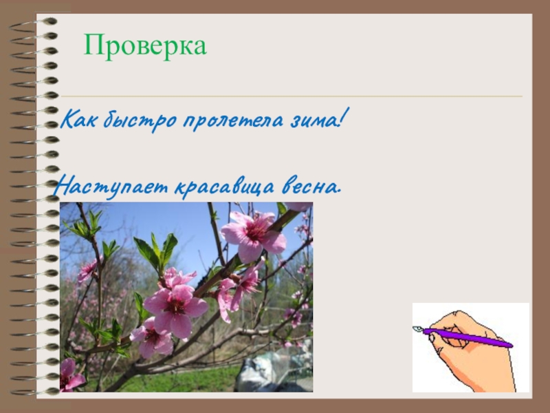 Как быстро пролетела зима!Наступает красавица весна.Проверка