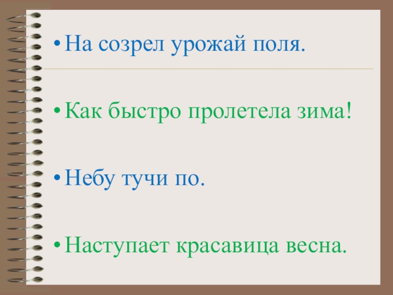 На созрел урожай поля.Как быстро пролетела зима!Небу тучи по.Наступает красавица весна.