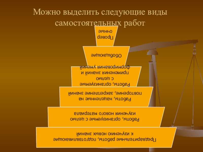 Слайд 6Можно выделить следующие виды самостоятельных работ