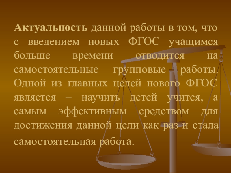 Слайд 3Актуальность данной работы в том, что с введением новых ФГОС учащимся