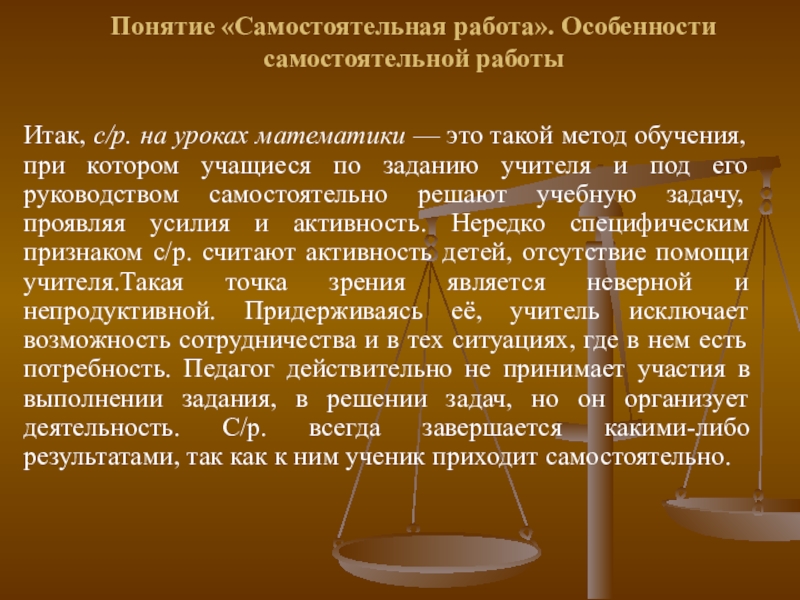 Слайд 4Понятие «Самостоятельная работа». Особенности самостоятельной работы