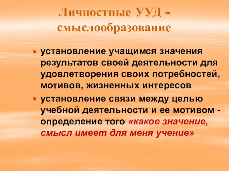 Слайд 4Личностные УУД - смыслообразование