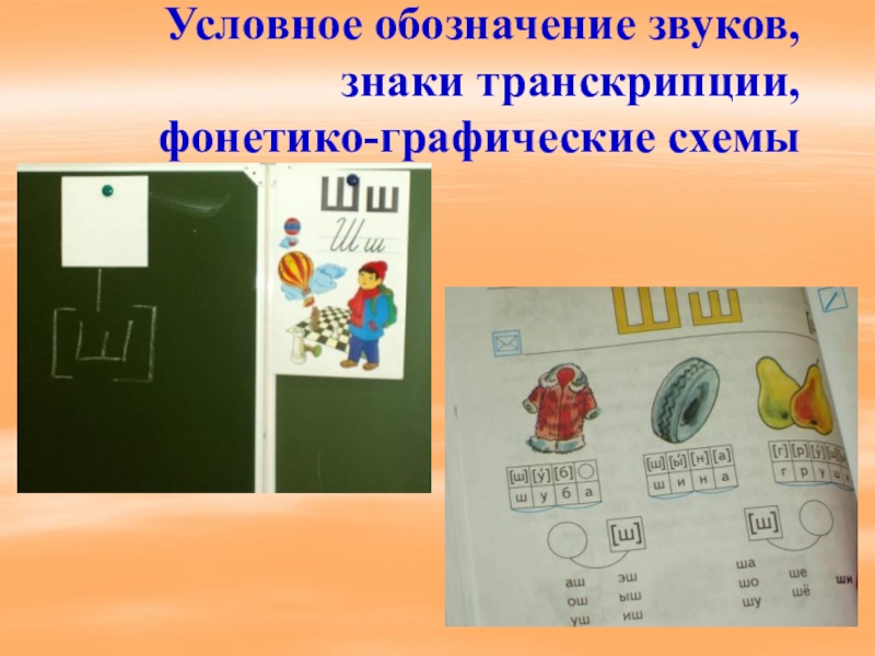 Слайд 14Условное обозначение звуков,