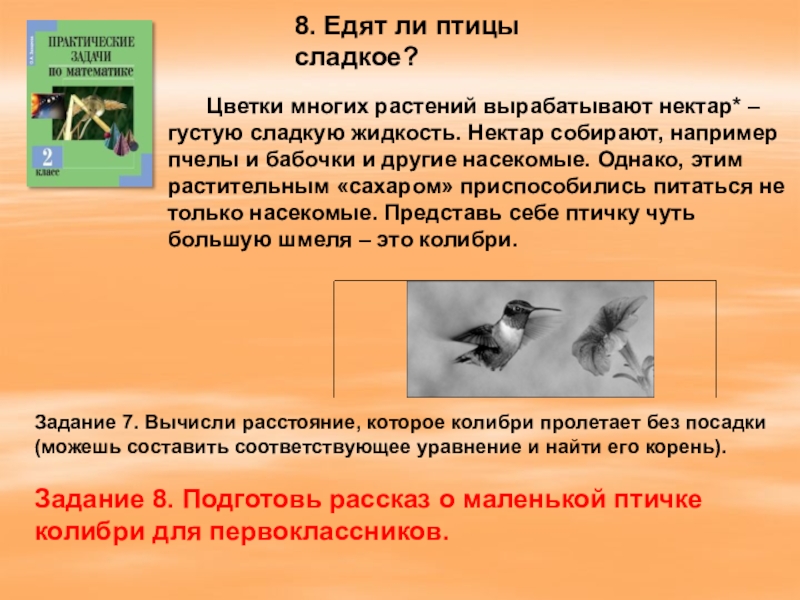 Задание 8. Подготовь рассказ о маленькой птичке колибри для первоклассников.