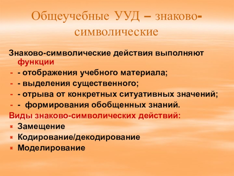 Слайд 13Общеучебные УУД – знаково-символические