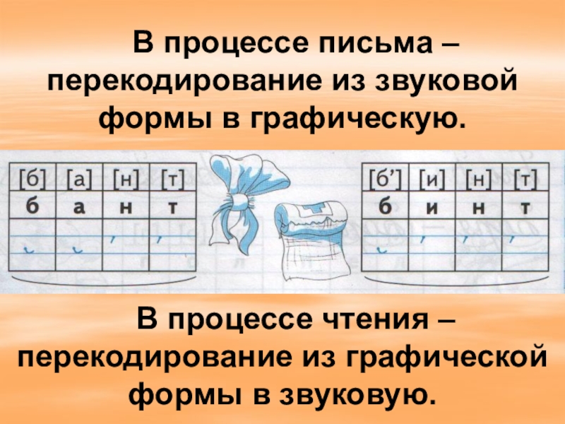 Слайд 17 В процессе письма – перекодирование из звуковой формы в
