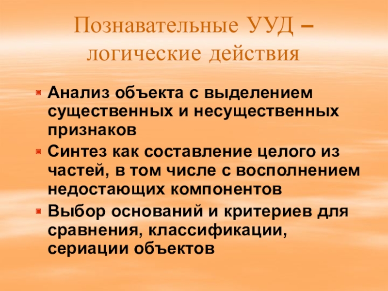 Слайд 25Познавательные УУД – логические действия