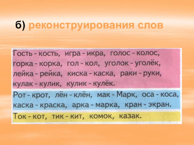 сочетаний слов;