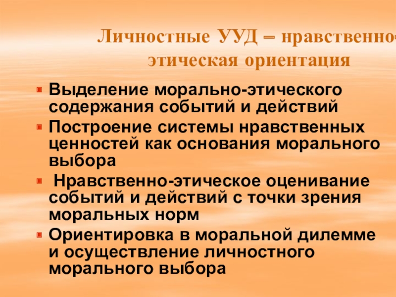 Слайд 5Личностные УУД – нравственно-этическая ориентация