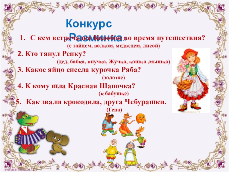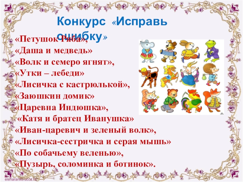 Конкурс «Узнай сказку по описанию»