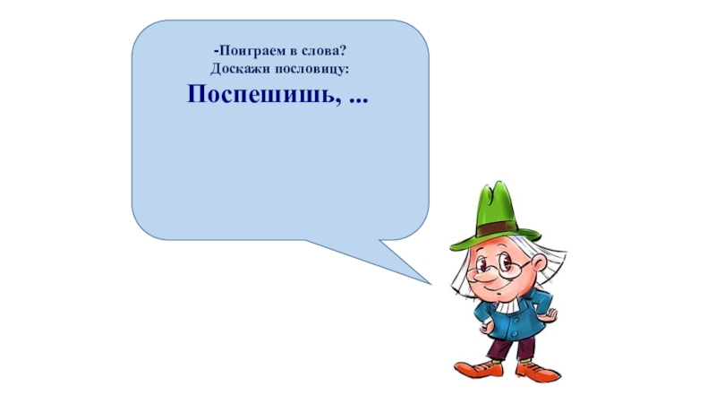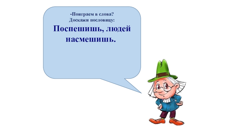 -Поиграем в слова?Доскажи пословицу:Поспешишь, людей насмешишь.