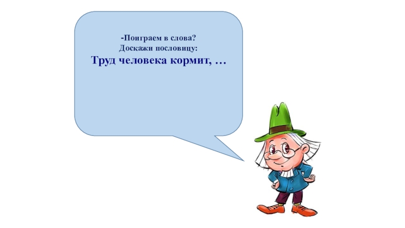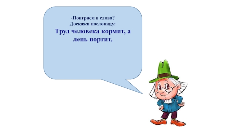 -Поиграем в слова?Доскажи пословицу:Труд человека кормит, а лень портит.