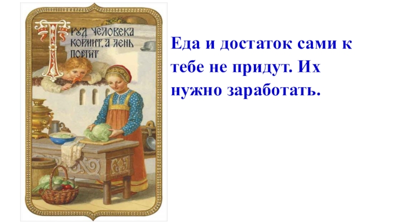 Слайд 20Еда и достаток сами к тебе не придут. Их нужно заработать.