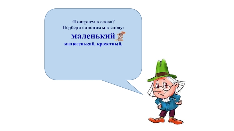 -Поиграем в слова?Подбери синонимы к слову:маленькиймалюсенький, крохотный,