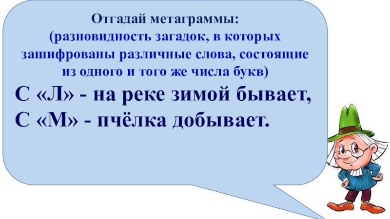 Отгадай метаграммы:(разновидность загадок, в которых зашифрованы различные слова, состоящие из одного и того же числа букв) С «Л» -