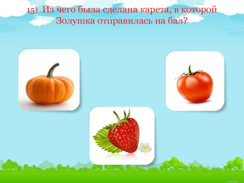 Слайд 3815)  Из чего была сделана карета, в которой Золушка отправилась на