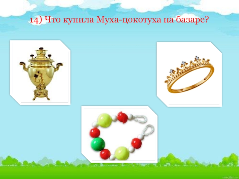Слайд 3514) Что купила Муха-цокотуха на базаре?