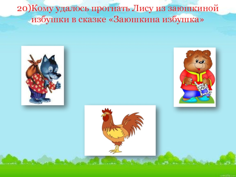 Слайд 5620)Кому удалось прогнать Лису из заюшкиной избушки в сказке «Заюшкина избушка»