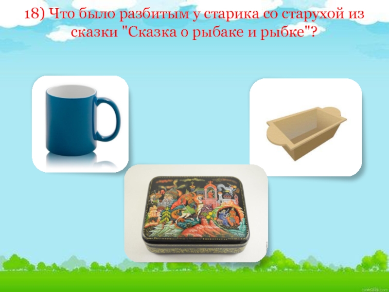 Слайд 4718) Что было разбитым у старика со старухой из сказки "Сказка
