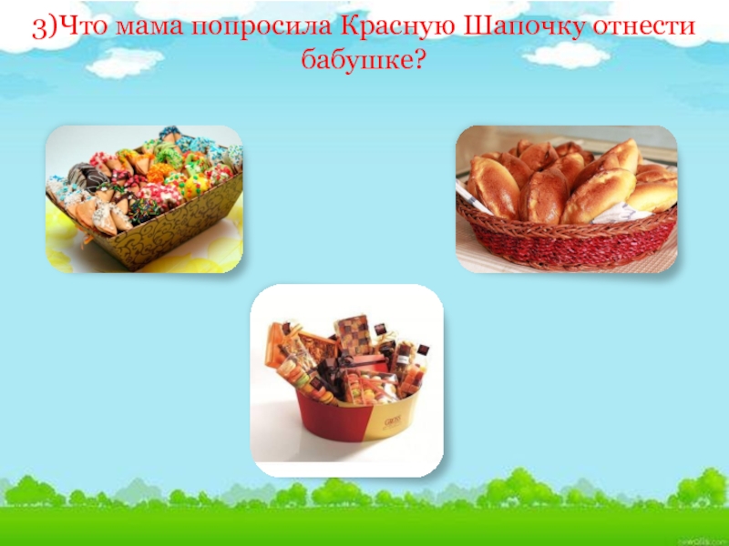 Слайд 83)Что мама попросила Красную Шапочку отнести бабушке?