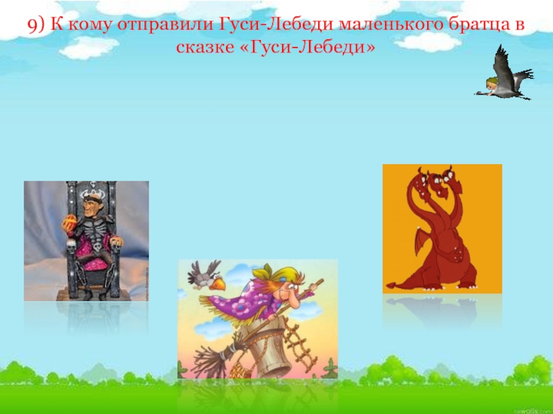 Слайд 209) К кому отправили Гуси-Лебеди маленького братца в сказке «Гуси-Лебеди»