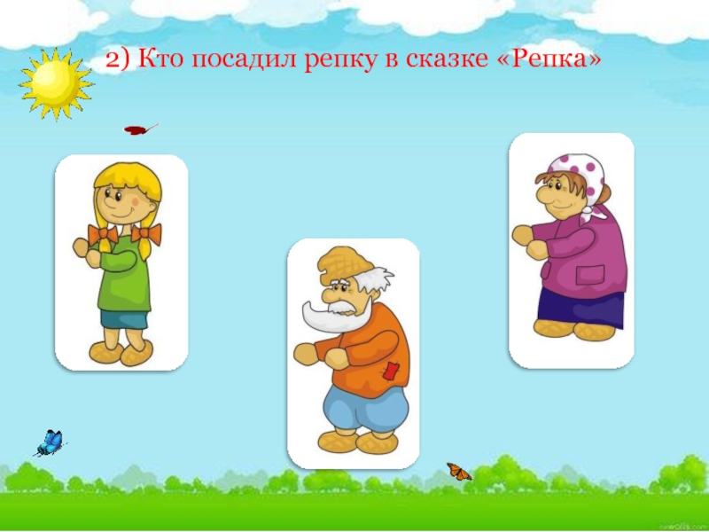 Слайд 52) Кто посадил репку в сказке «Репка»