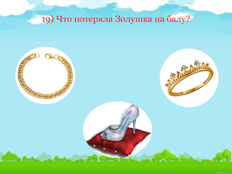 Слайд 5319) Что потеряла Золушка на балу?