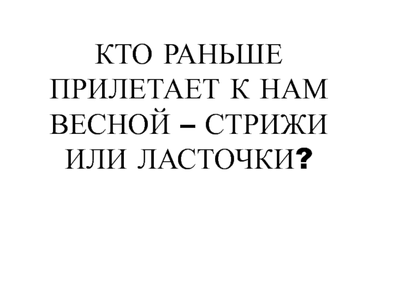 Слайд 63КТО РАНЬШЕ ПРИЛЕТАЕТ К НАМ ВЕСНОЙ – СТРИЖИ ИЛИ ЛАСТОЧКИ?