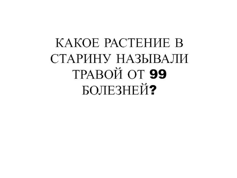 Слайд 42КАКОЕ РАСТЕНИЕ В СТАРИНУ НАЗЫВАЛИ ТРАВОЙ ОТ 99 БОЛЕЗНЕЙ?