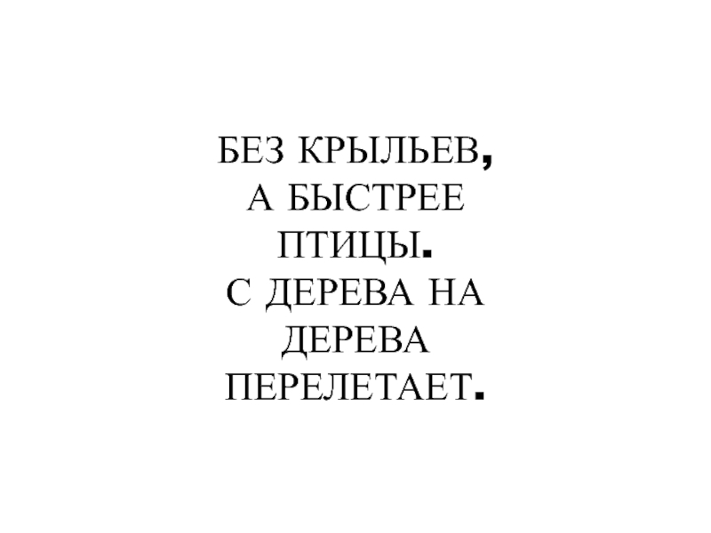 БЕЗ КРЫЛЬЕВ,А БЫСТРЕЕ ПТИЦЫ.С ДЕРЕВА НА ДЕРЕВА ПЕРЕЛЕТАЕТ.