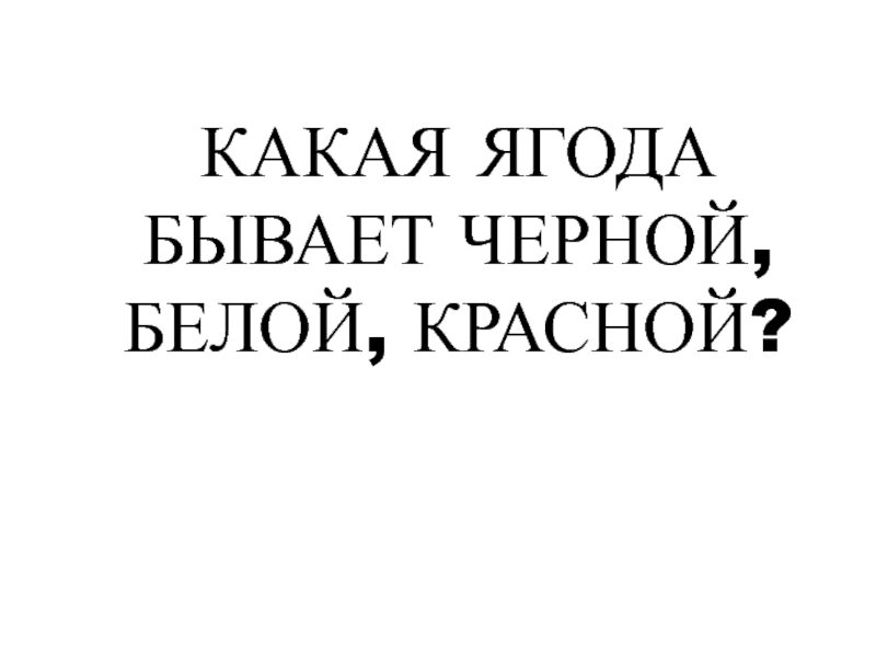 Слайд 50КАКАЯ ЯГОДА БЫВАЕТ ЧЕРНОЙ, БЕЛОЙ, КРАСНОЙ?