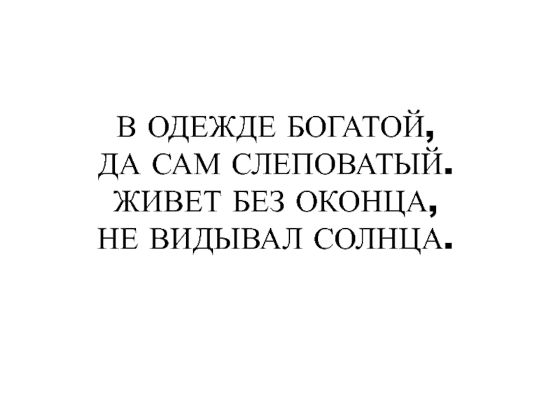 В ОДЕЖДЕ БОГАТОЙ,ДА САМ СЛЕПОВАТЫЙ.ЖИВЕТ БЕЗ ОКОНЦА,НЕ ВИДЫВАЛ СОЛНЦА.