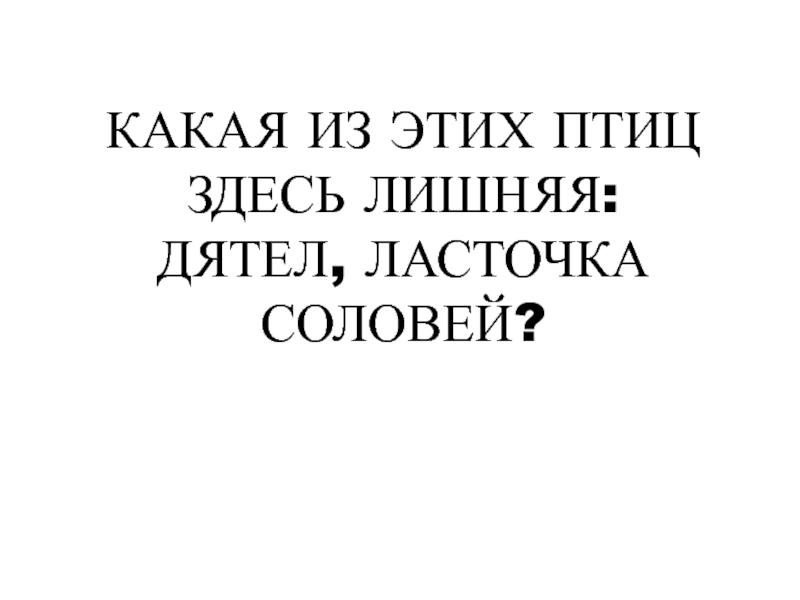 КАКАЯ ИЗ ЭТИХ ПТИЦ ЗДЕСЬ ЛИШНЯЯ: ДЯТЕЛ, ЛАСТОЧКА СОЛОВЕЙ?