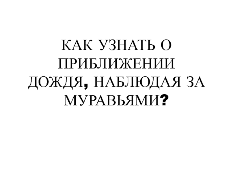 Слайд 29КАК УЗНАТЬ О ПРИБЛИЖЕНИИ ДОЖДЯ, НАБЛЮДАЯ ЗА МУРАВЬЯМИ?