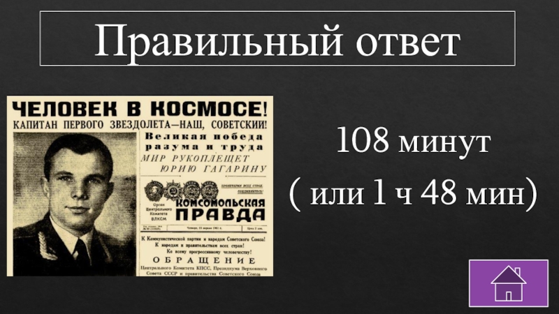 Слайд 47Сколько минут продолжался полёт первого космонавта Земли?