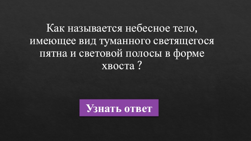Слайд 9Как называется небесное тело, имеющее вид туманного светящегося пятна и световой