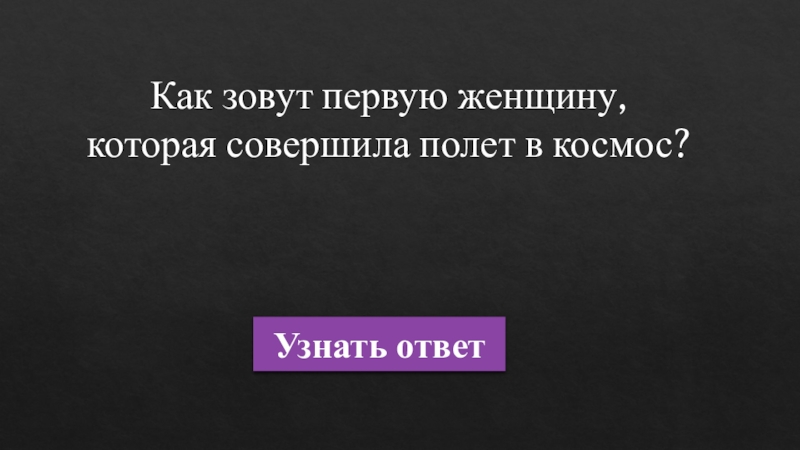 Слайд 19Как зовут первую женщину, которая совершила полет в космос?